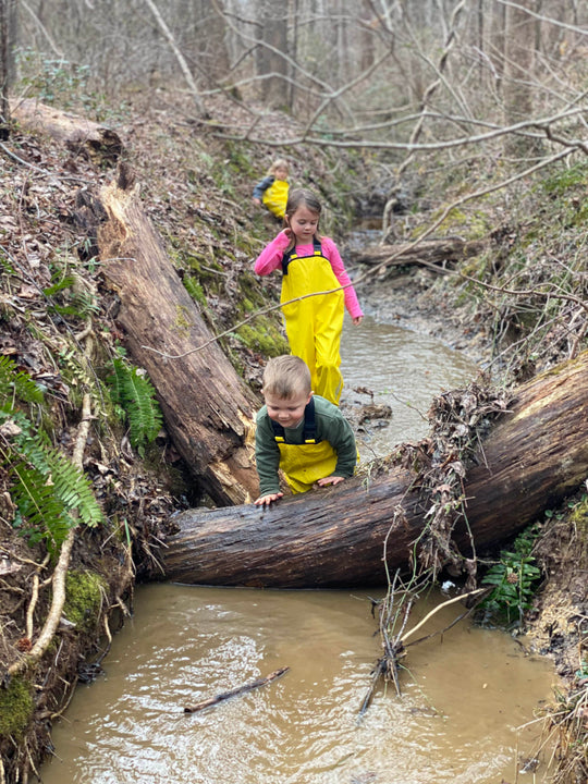 Children need comfortable, protective shoes with gripping soles for running, jumping, and climbing. Sneakers or well-fitting hiking boots are best. Your child will need rain boots for wet and rainy days and also for visiting the stream. When we return from wet or muddy trail walks, we will